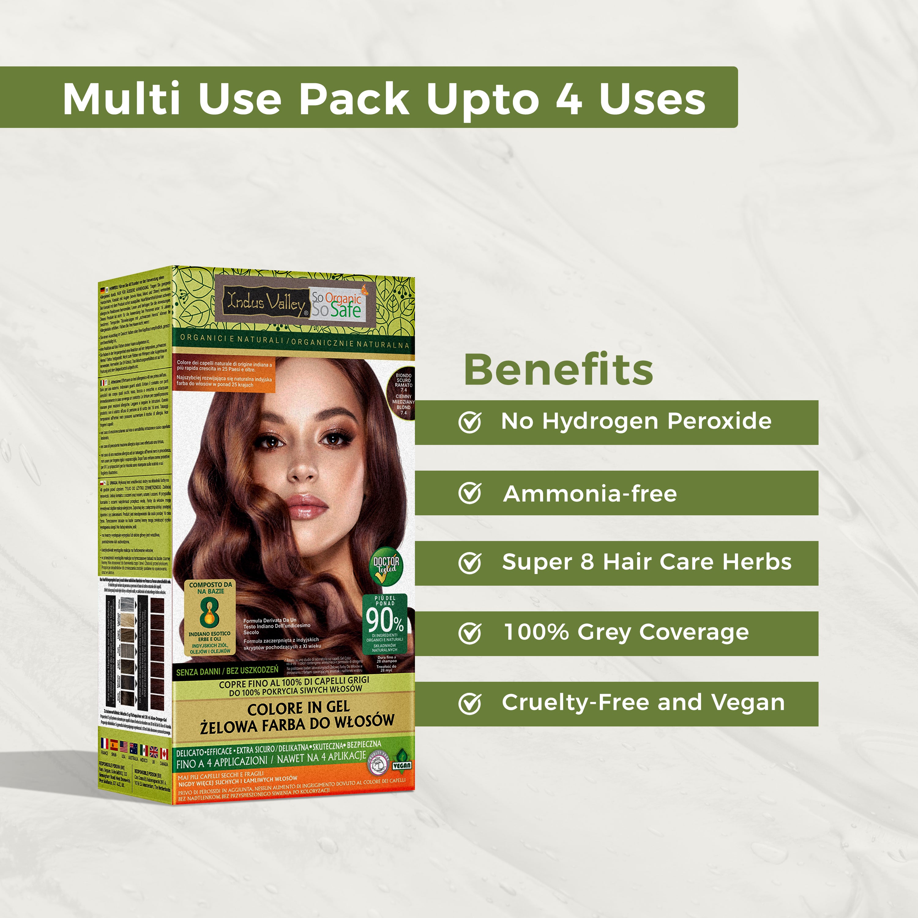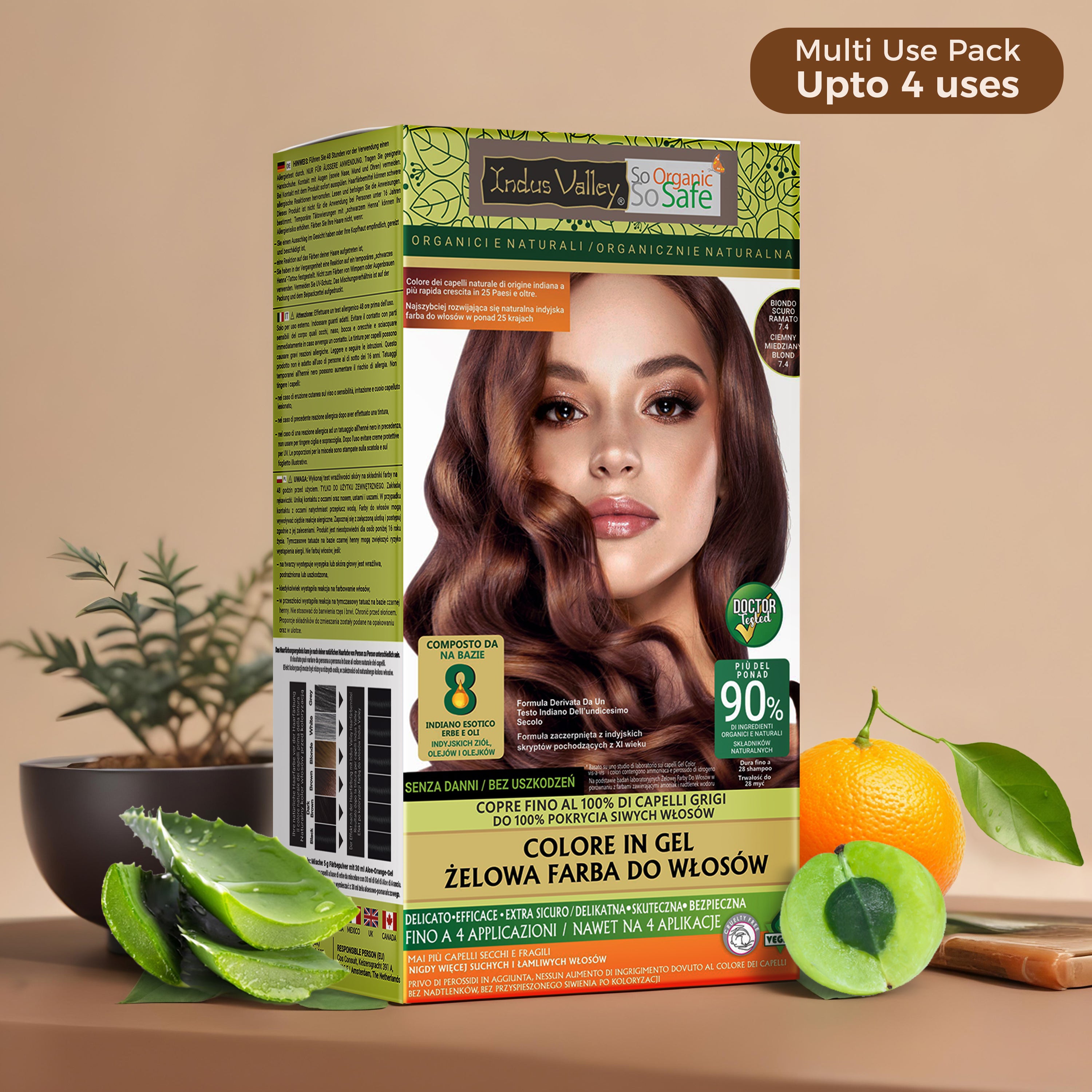 Żelowa farba do włosów, Ciemny Miedziany Blond 7.4, 220g, Indus Valley