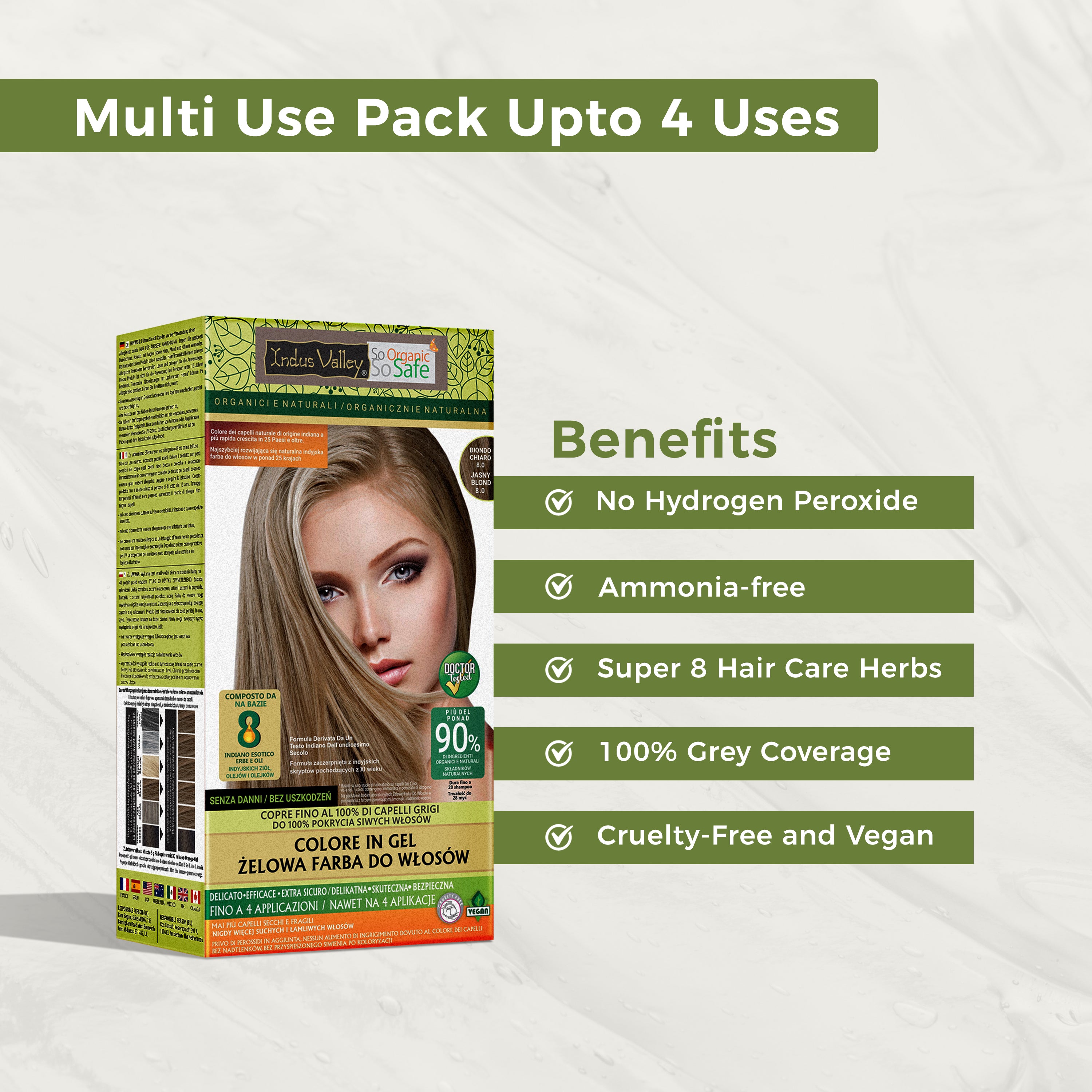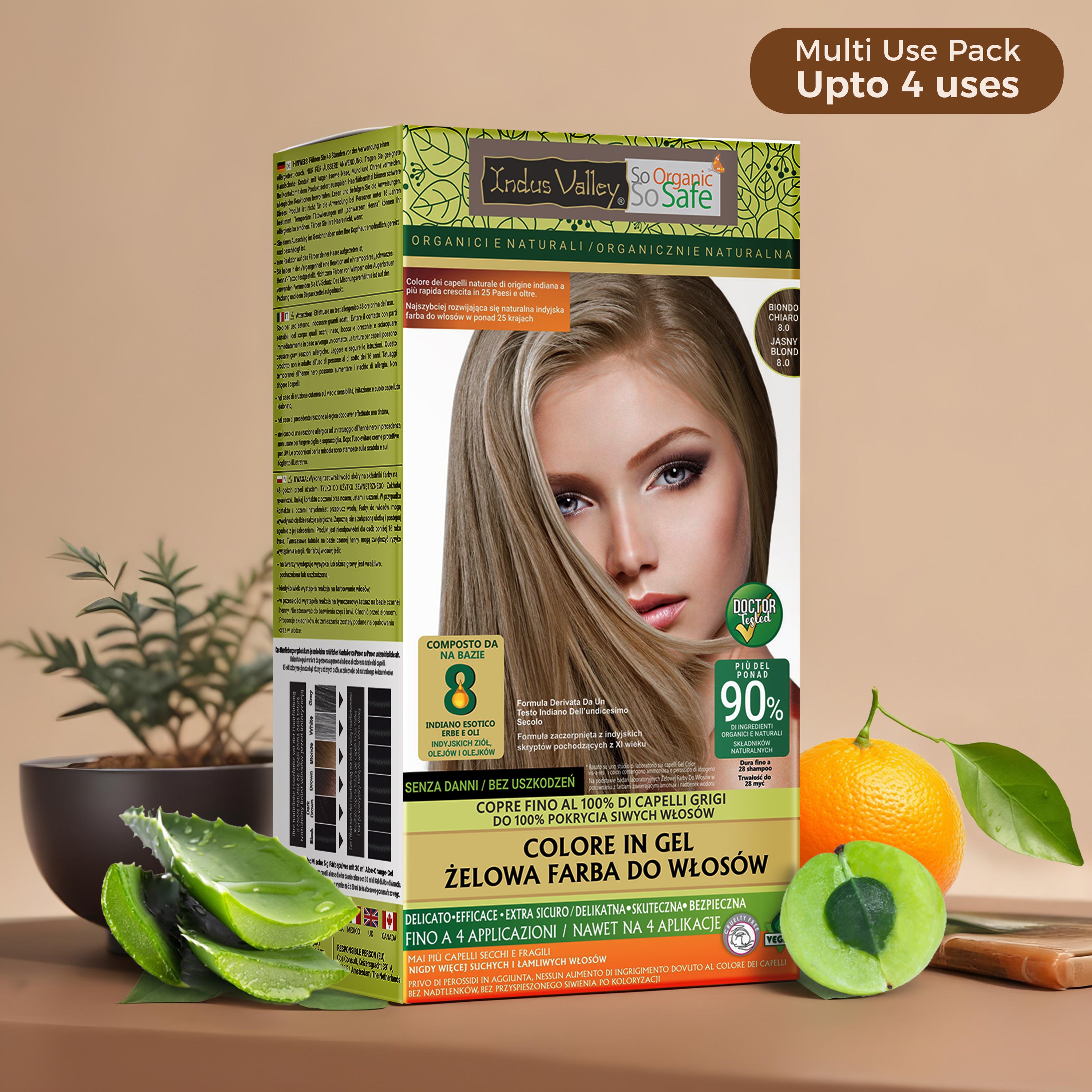 Żelowa farba do włosów,  Jasny Blond, 8.00, 220g, Indus Valley