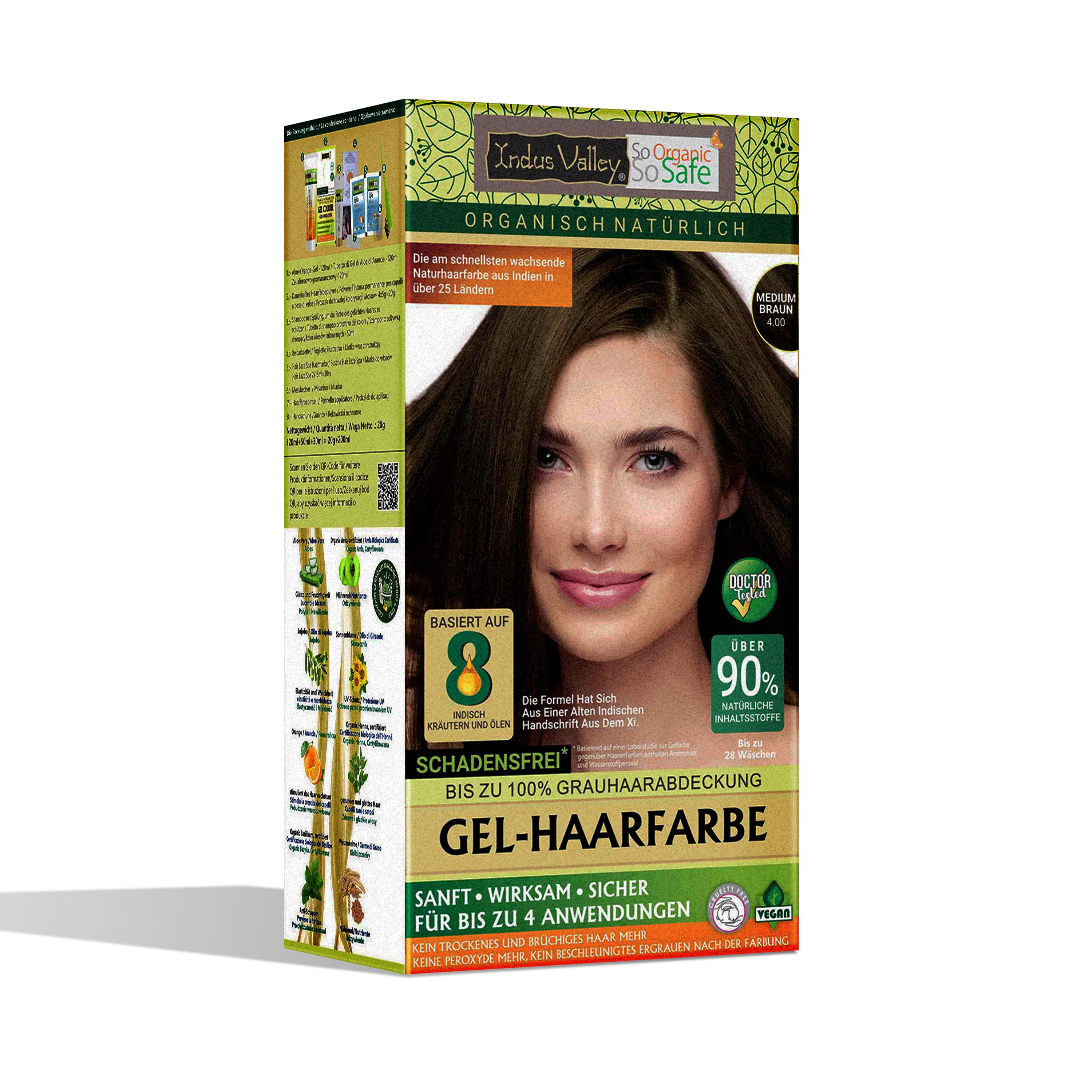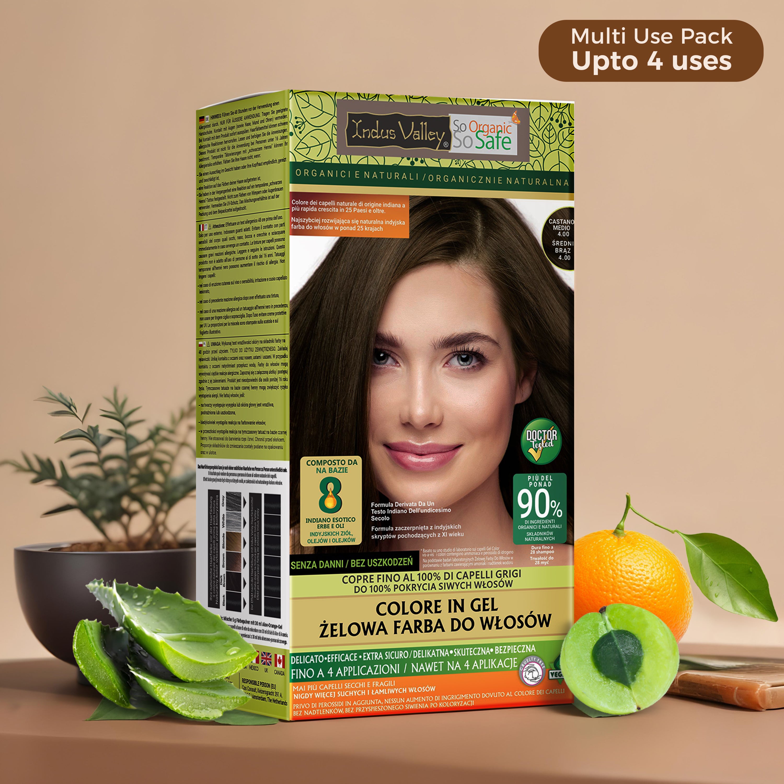 Żelowa farba do włosów, Średni Brąz, 4.00, 220g, Indus Valley