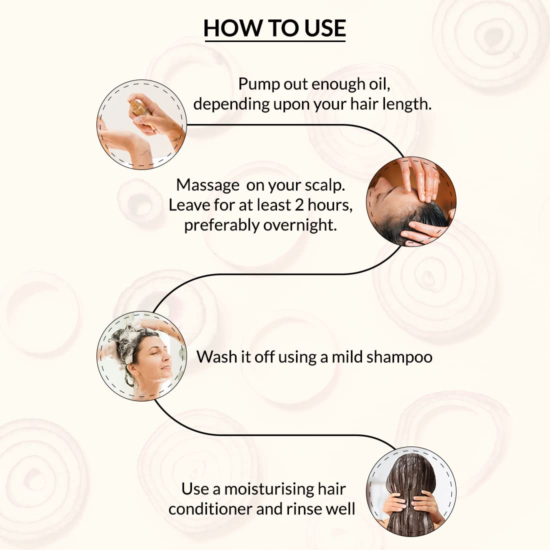 - Step 2: Massage it in circular motions on your scalp. Keep it for a minimum 2 hours, preferably overnight.